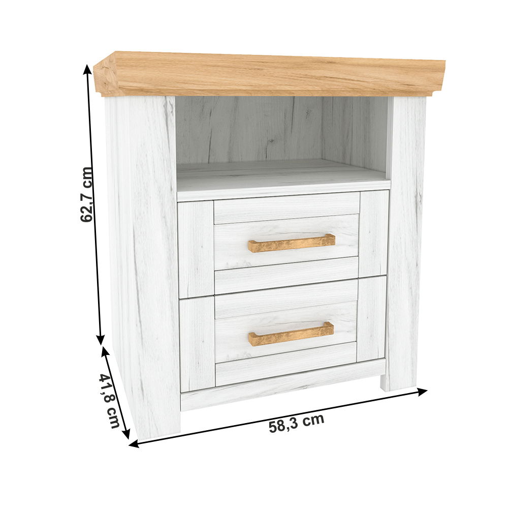 Noční stolek Soleus X je praktickým a moderním doplňkem do vaší ložnice. S výškou 62,7 cm a hloubkou 41,8 cm nabízí dostatek úložného prostoru pro vaše věci. Je vyroben z DTD laminované desky a má tloušťku korpusu 16 mm a vrchní desky 22 mm. Stolek je k dispozici v dubové barvě craft zlatý nebo craft bílý. Spodní prostor od podlahy má výšku 4,2 cm. Stolek má dvě zásuvky a otevřený prostor pro snadný přístup k vašim věcem. Dodává se v demontu a je lehký k sestavení. Noční stolek Soleus X bude skvělým doplňkem do vašeho domova, který vám poskytne potřebný úložný prostor a zároveň bude skvěle vypadat.
