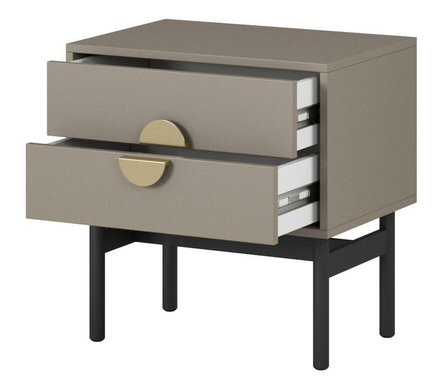 ZobrazitChcete udělat metamorfózu ve svém interiéru? Máte rádi originální řešení a jednoduché formy nábytku? Výběrem naší kolekce vnesete do interiéru harmonii a eleganci a potěšíte své hosty Noční stolek s jedinečným designem v elegantní barvě dokonale zapadne do moderních interiérů. Je vyroben z kvalitní laminované dřevotřískové desky, která zajišťuje dlouhodobé a bezproblémové používání. Jeho charakter obohacuje pevný rám vyrobený z oceli, který činí nábytek nejen odolným, ale dodává mu i industriální šarm. Zlaté úchytky tvořící kruh jsou zase nejen praktickým prvkem, který usnadňuje otevírání, ale dodávají celé skříňce eleganci a jemný lesk. Tento malý, ale rafinovaný detail odlišuje nábytek a dodává mu mírně luxusní akcent. Skříňka byla navržena s ohledem na funkčnost, proto má dvě malé zásuvky pro uložení. drobnosti potřebné u postele, jako jsou tablety, kniha nebo nabíječka. Kombinace nevšední barvy s černým rámem a zlatými úchyty vytváří harmonický a moderní celek, který dokonale zapadne do různých interiérových aranžmá a dodá jim jedinečný charakter. Tato skříňka je nejen praktickým úložným řešením, ale také designovým prvkem, který ozdobí a zdůrazní individuální styl každé místnosti Detaily produktu: korpus a čela vyrobená z laminované desky Stone Grey U727 ST9, odolná vůči vlhkosti, vysoké teplotě a poškrábání. , rám vyrobený z černé prášek lakované oceli, která usnadňuje udržování pořádku pod nábytkem, úchyty zlaté barvy z broušené oceli.