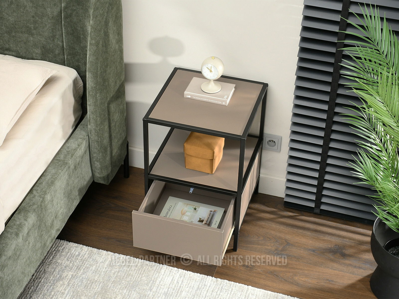 Jednolůžková postel 120 cm Camtana (béžová + černá) (s roštem) (s úl. prostorem)
