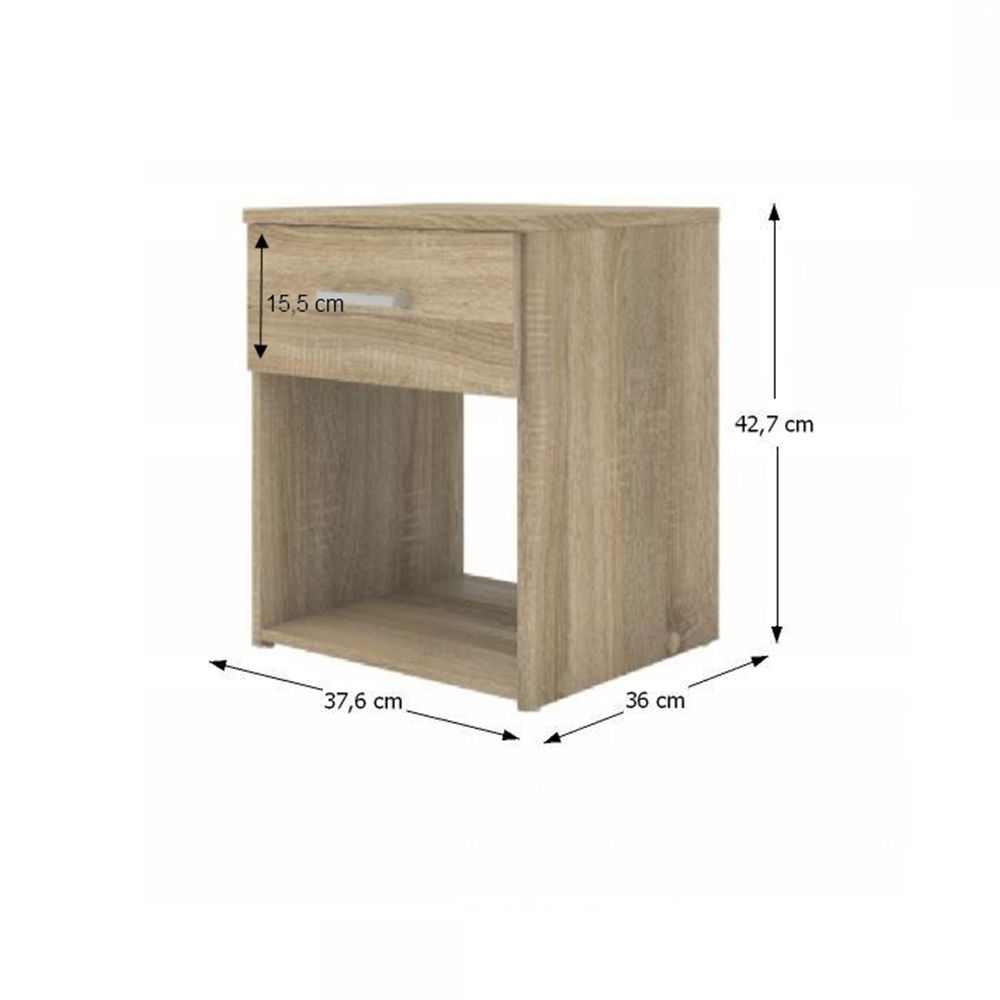 Noční stolek Variar dub sonoma výška 42,7 cm hloubka 36 cm Dub Sonoma. Tento stylový noční stolek s jedním šuplíkem v horní části a poličkou umístěnou pod ní bude skvělým doplňkem každé ložnice. Jeho úchyt v šedé barvě a provedení v dub sonoma dodávají tomuto nočnímu stolku moderní a elegantní vzhled. Je vyroben z DTD laminovaného materiálu, který je dostatečně pevný a odolný. Stolek má rozměry 72,4x30,1x68,3 cm, výška stolku je 42,7 cm a hloubka 36 cm. Tloušťka materiálu je 12 mm a je dodáván v demontu, což umožní snadnou montáž. Tento noční stolek je ideální pro ty, kdo hledají moderní a praktický nábytek pro svou ložnici.