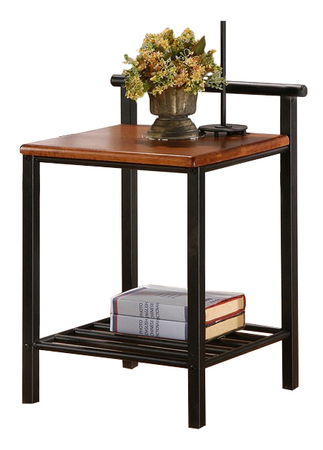 Elegantní noční stolek v klasickém stylu, který zároveň působí moderním dojmem. Konstrukce je z kovu černé barvy a kvalitního malajského dřeva v barvě třešeň antická. Obsahuje i praktickou odkládací poličku.