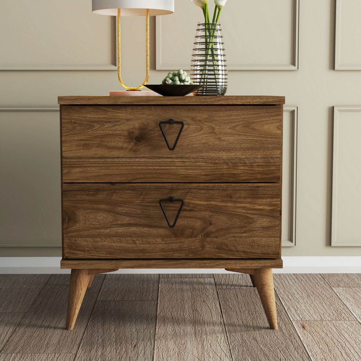 Noční stolek Versala v ořechovém provedení vám nabízí nejen praktický prostor pro vaše noční potřeby, ale také elegantní doplněk do vaší ložnice. S výškou 55,1 cm, šířkou 52 cm a hloubkou 45 cm nabízí dostatek místa pro vaši lampu, knihu nebo telefon. Materiálem stolku je kvalitní 100% melaminová deska, která zaručuje dlouhou životnost a odolnost vůči poškození. Díky svému modernímu designu a kvalitnímu zpracování je noční stolek Versala ideální volbou pro každého, kdo hledá praktický, ale zároveň stylový doplněk do své ložnice.