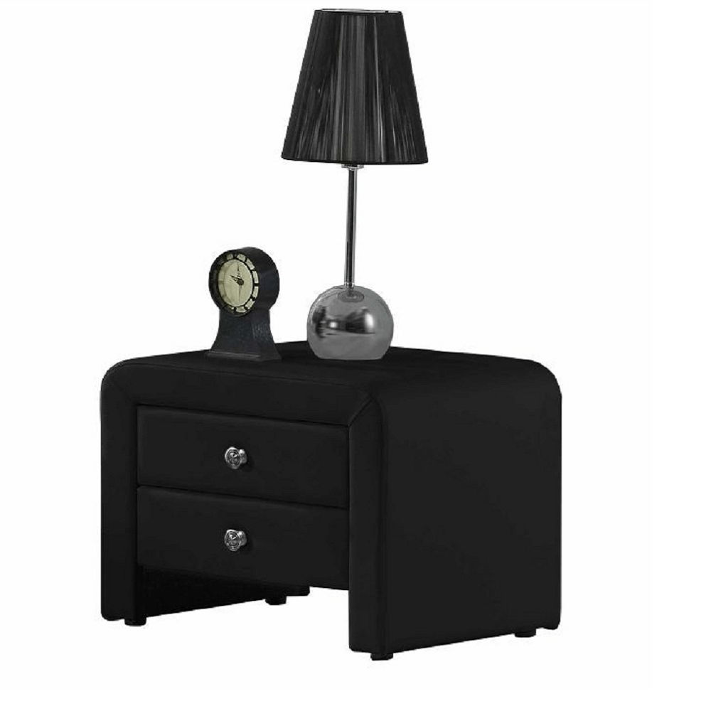 Noční stolek Wilmot (černá) o výšce 37 cm a hloubce 38 cm je skvělým doplňkem každé ložnice. Čalounění z ekokůže a kovová madla dodávají stolku jedinečný vzhled. Se dvěma šuplíky poskytuje dostatek úložného prostoru pro vaše věci. Noční stolek stojí na malých nožičkách, které chrání podlahu před poškozením. Materiál stolku sestává z ekokůže a kovu. Rozměry stolku jsou 50x38x37 cm (ŠxHxV). Udělejte si radost a získejte tento designový kousek pro vaši ložnici.