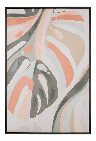 Nechte se inspirovat světlými barvami tohoto obrazu a doplňte jimi stěnu v obývacím pokoji nebo ložnici. Tento obraz se hodí k bílému a béžovému nábytku a krásně doplní interiér svou jemnou růžovou a olivově zelenou barvou. List monstery je velmi trendovým motivem, který se hodí do interiérů zařízených v boho nebo retro stylu.