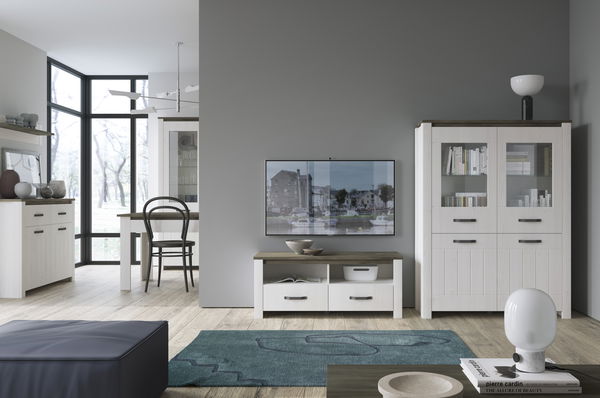 Obývací pokoj Andres 1 je kolekce nábytku, která je vyrobena z kvalitních materiálů a má moderní design. Kolekce se skládá z několika prvků včetně skříňky na TV, polic a stolku na kávu. Všechny tyto prvky mají stejný styl a barevné odstíny, čímž se vytváří jednotný a vkusný interiér. Nábytek je také funkční – skříňka na TV má dostatek místa pro odkládání elektroniky, poličky jsou ideální pro vystavení dekorací a stolek na kávu je praktický a pěkný zároveň. Obývací pokoj Andres 1 je perfektní volbou pro ty, kteří hledají kvalitní nábytek s moderním designem pro svůj domov.