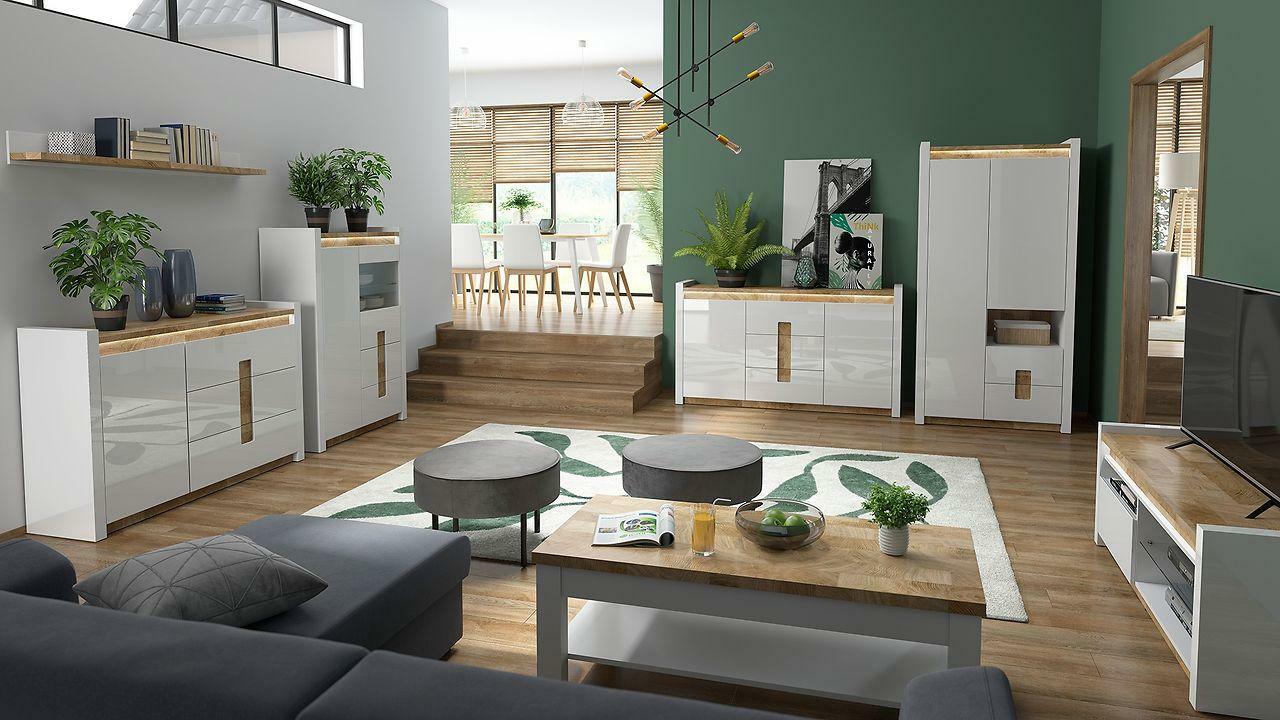 Obývací pokoj BRW Alameda 1 (lesk bílý + dub westminster)