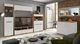Obývací pokoj Nuis přeměňuje běžný interiér na domov s charakterem. Moderní a funkční sada nábytku pro váš obývací prostor. Skládá se z pohodlného rohového sedacího soupravy, který nabízí dostatek místa pro pohodlné sezení pro celou rodinu. Kvalitní materiály jako kůže a příjemná textilní látka zajišťují vysoký komfort a odolnost vůči opotřebení. K soupravě patří také praktické skříňky a poličky, které poskytují dostatek úložného prostoru pro vaše věci. Jednoduchý a elegantní design v neutrálních barvách umožňuje jednoduchou kombinaci se zbytkem interiéru. skvělou volbou pro ty, kteří hledají moderní a funkční nábytek pro svůj obývací prostor a přináší rovnováhu mezi pohodlím a stylem.
