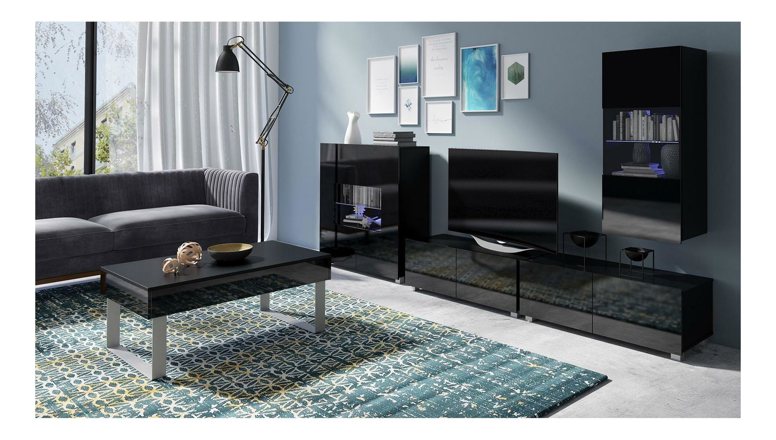 Obývací pokoj Calabria 1 (černá matná + lesk černý) (s osvětlením)