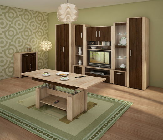 Obývací pokoj Nelly 1 vás zve zpomalit a užívat si přítomný okamžik. Sestava M3 je nádherná souprava nábytku, která se skládá z rohového pohovky, stolku a skříně. odkládání předmětů, které potřebujete mít vždy po ruce. Skříň disponuje dostatečně velkým úložným prostorem pro vaše věci.