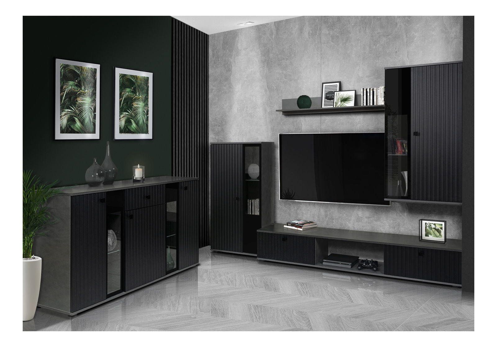 Obývací pokoj Saul (černá + matera) (bez osvětlení)