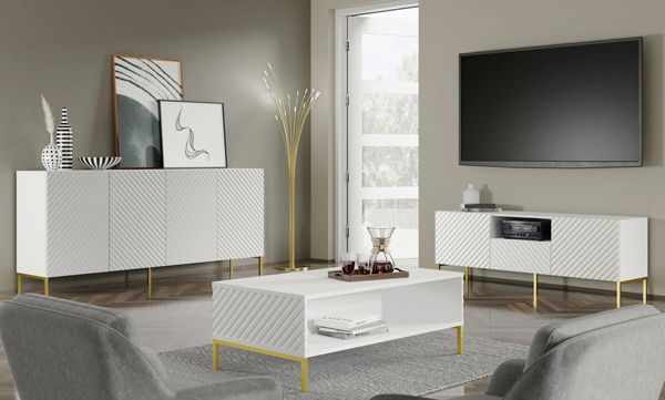 Obývací pokoj Surfy 3 v bílém provedení přináší do vašeho domova svěží a moderní design. Skládá se z TV stolku/skříňky Surfy 3D, konferenčního stolku Surfy 3D a skříňky Surfy 4D, všechny v jednotném bílém odstínu. Tato sestava nabízí čisté linie a praktické úložné prostory, které se snadno kombinují s různými interiérovými styly. Bílá barva nábytku opticky zvětšuje prostor a dodává místnosti světlost. Díky jednoduchému designu a funkčnosti je tato sestava ideální pro ty, kteří hledají elegantní a praktické řešení pro svůj obývací pokoj.