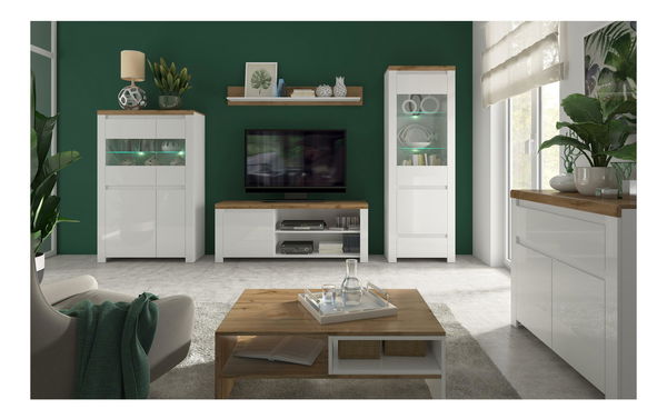 Obývací pokoj Vina 1 (bílá lesklá + dub wotan)