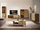 Obývací pokoj Wilsire 1 v kombinaci dubu coast evoke a černých ploch s integrovaným osvětlením působí výrazně a zároveň promyšleně elegantně. Dvojice vitrín s jemným prosklením a světlem vytváří večer působivou atmosféru, zatímco komoda a TV stolek poskytují dostatek úložného prostoru bez narušení čistých linií. Konferenční stolek uzavírá sestavu funkčně i vizuálně, čímž dotváří harmonické centrum místnosti. Wilsire 1 je ideální volbou pro ty, kdo si potrpí na detail, milují přírodní dekory a chtějí svůj interiér přetvořit na stylové a útulné místo, které zaujme hned na první pohled.