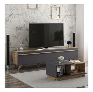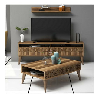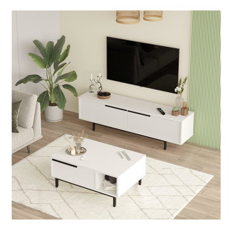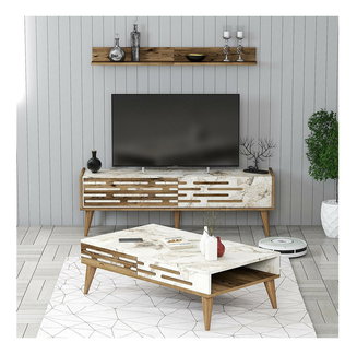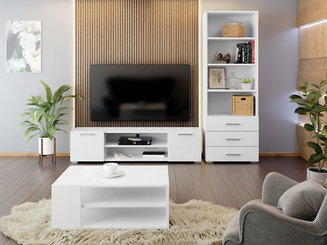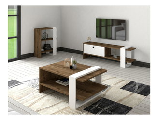 Sada nábytku do obývacího pokoje Kutanetta (bílá + světlé dřevo)