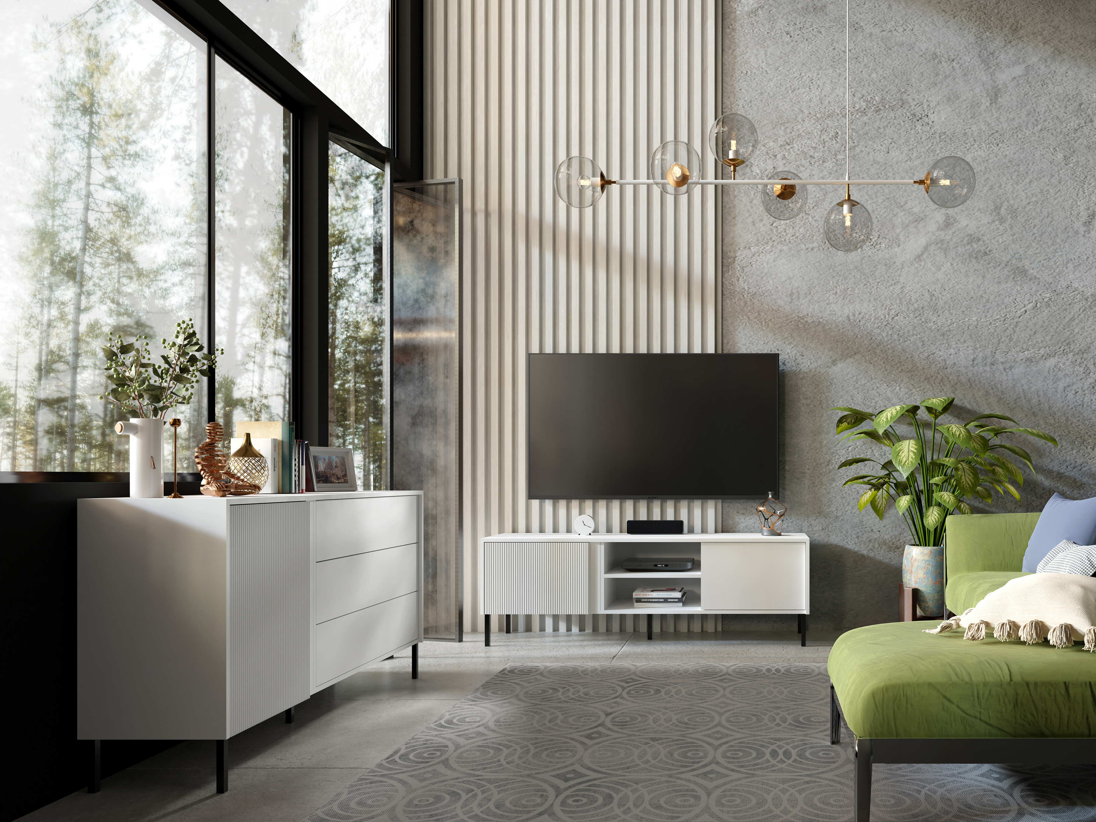 Obývací sestava Munkki v přeměňuje běžný interiér na domov s charakterem. kontrastním provedení bílá+černá přináší moderní a stylový vzhled do obývacího prostoru. Set obsahuje Komodu Munkki 1, která je ideální pro uložení dokumentů a dekorací; Skříňku Munkki 4, která poskytuje praktická úložná řešení; TV stolek/skříňku Munkki 7, která nabízí prostor pro elektroniku a doplňky; a Konferenční stolek Munkki 8, ideální pro uložení časopisů, šálků či dekorativních předmětů. Tento nábytek kombinuje estetiku s funkčností a dotváří elegantní interiér a přináší rovnováhu mezi pohodlím a stylem.