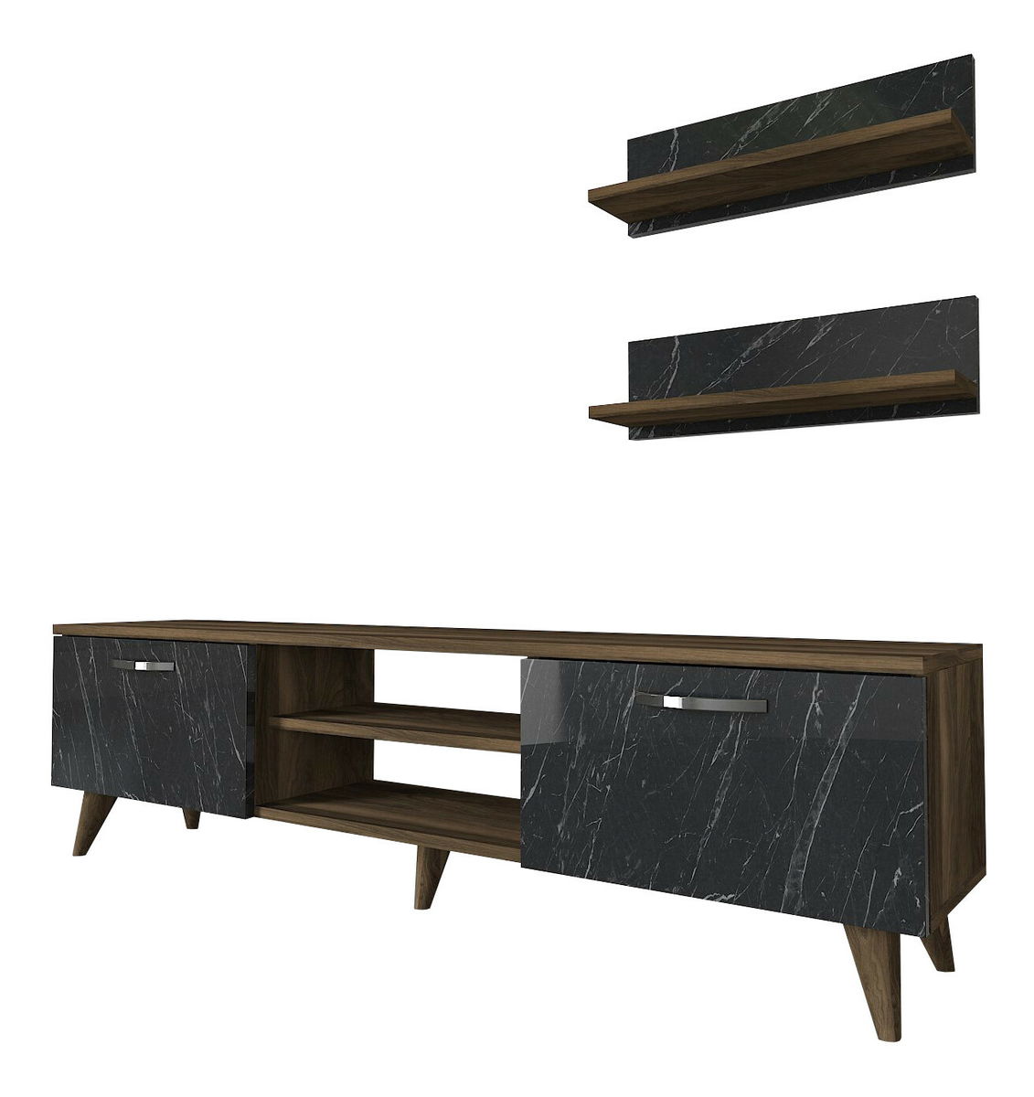Obývací stěna - Adams (Ořech + Mramor) je stylový a funkční nábytek pro Váš obývací prostor. S výškou 40 cm, šířkou 150 cm a hloubkou 29 cm nabízí dostatek úložného prostoru pro vaše věci. S kombinací dřeva ořech a mramoru přináší do vašeho interiéru elegantní a luxusní vzhled. Tato obývací stěna bude praktickým a elegantním doplňkem pro každého zákazníka, hledajícího stylové a kvalitní řešení pro svůj domov.