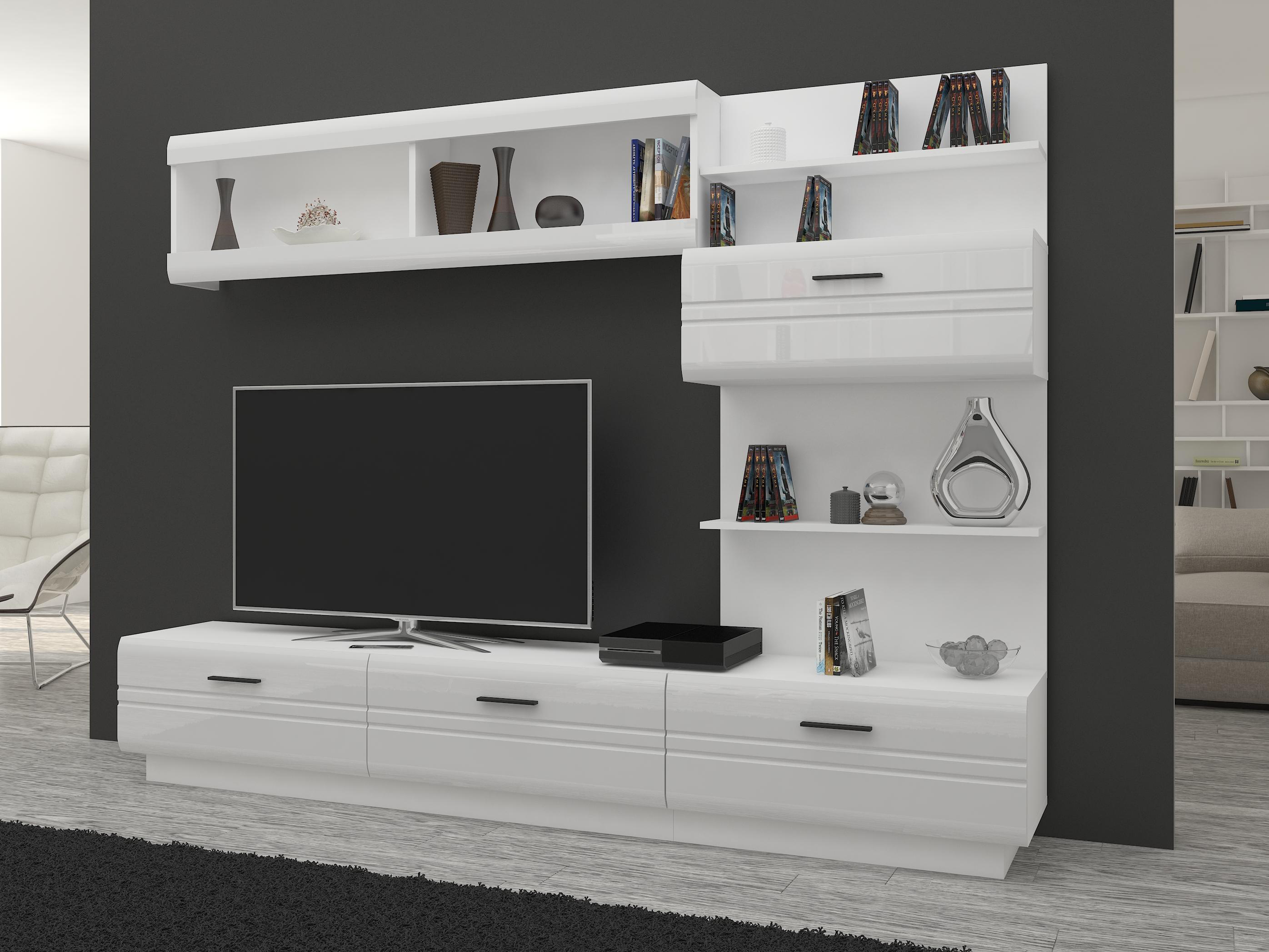 Obývací stěna Alford (bílá + lesk bílý)