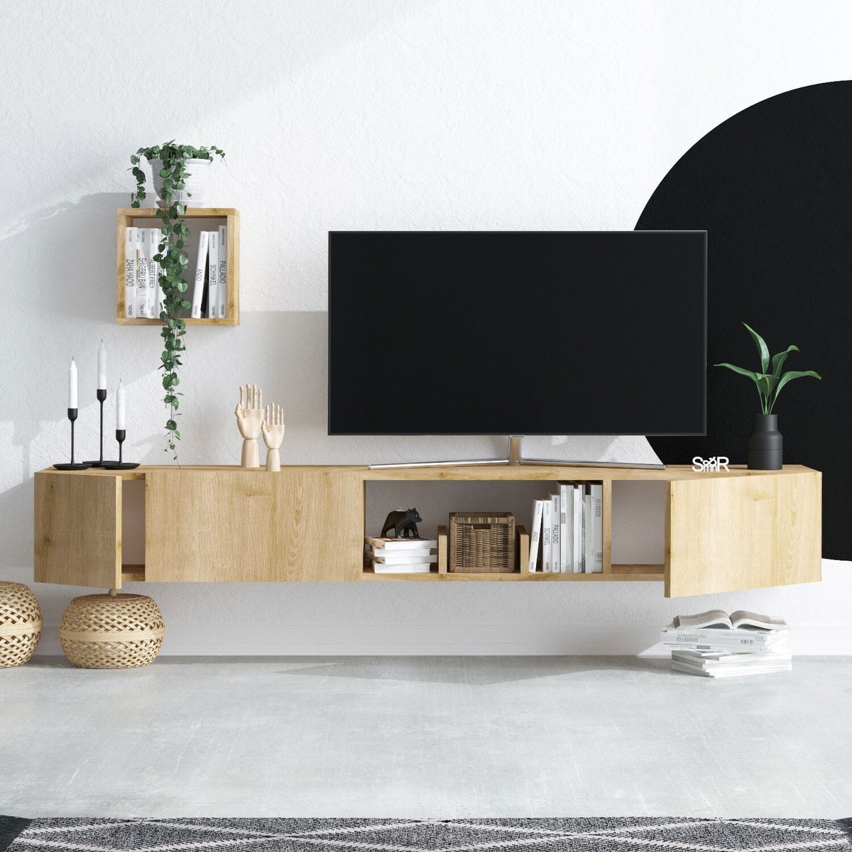 ZobrazitObývací stěna Aviator (Dub safírový) je praktický a elegantní nábytek, který poslouží jako ideální místo pro váš televizor a další AV zařízení. S výškou 25 cm, šířkou 180 cm a hloubkou 32 cm, tento stolek/skříňka nabízí dostatek místa pro uspořádání všech vašich elektronických zařízení. Její design v dubovém safírovém provedení dodává vašemu interiéru stylový a moderní vzhled. Stěna má praktické úložné prostory a police, kde můžete uspořádat své DVD, ovladače a další drobnosti. Díky své pevné konstrukci a kvalitním materiálům je tato obývací stěna odolná a dlouhotrvající. Aviator (Dub safírový) je ideální volbou pro ty, kteří hledají spojení funkcionality, stylu a kvality pro svůj obývací pokoj.