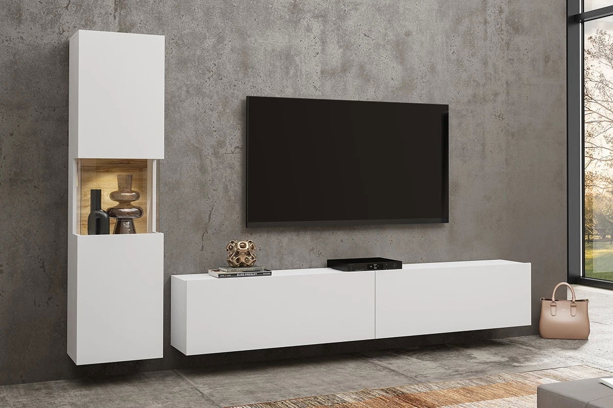 ZobrazitNabízíme Vám obývací stěnu Avernic Typ 09 v bílá + dub Wotan barvě, s výškou 140 cm a hloubkou 30 cm. Tato stěna se skládá z vitríny Avernic Typ 05 a TV stolku Avernic Typ 40. Materiál laminované desky zaručuje vysokou kvalitu a odolnost. Tento nábytek bude skvělým doplňkem do vašeho obývacího prostoru, který vám poskytne dostatek úložného prostoru pro vaše věci a zároveň bude esteticky příjemným prvkem. Objednejte si tento produkt ještě dnes a zvyšte komfort Vašeho bydlení!