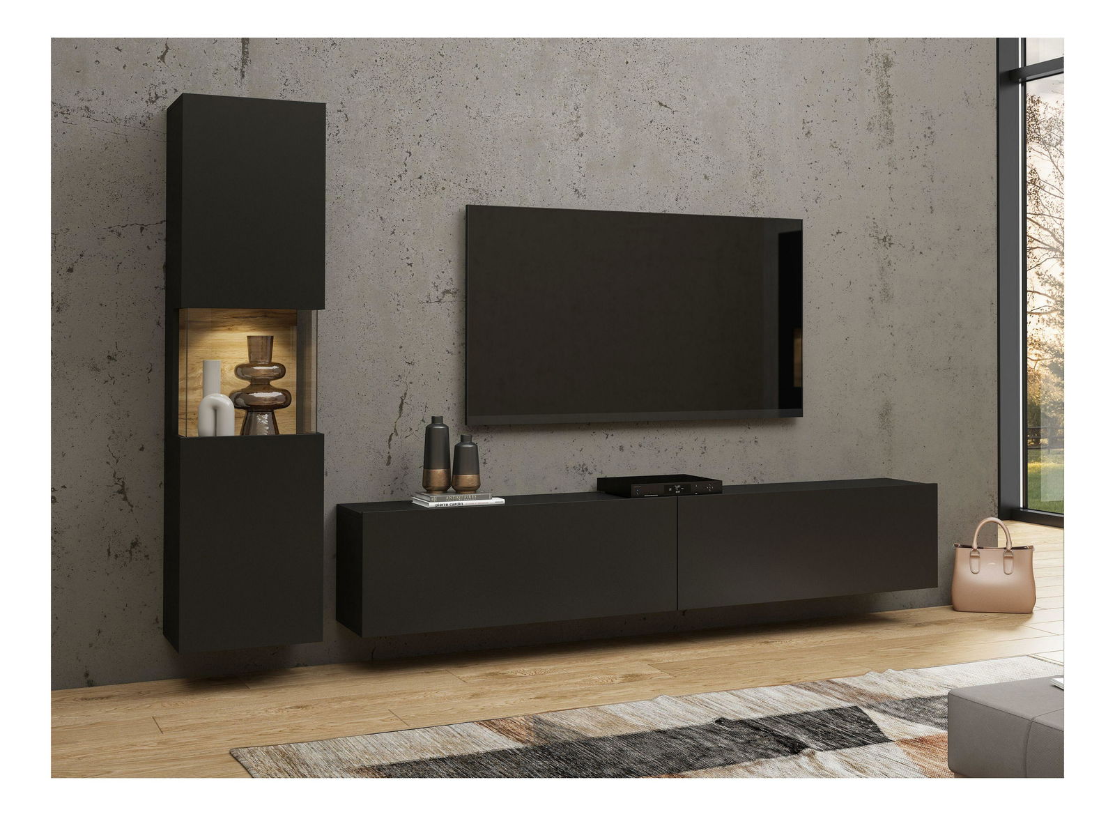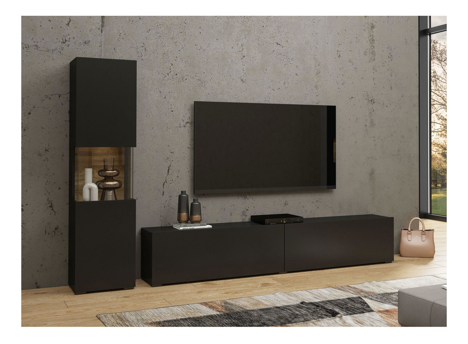 ZobrazitObývací stěna Avernic Typ 09 (onyx černá + dub wotan) je moderní, kvalitní a praktická sada nábytku pro obývací pokoj. tento nábytek odolný vůči poškrábání a snadný na údržbu. dostatek místa pro uskladnění nádobí a dekorací, zatímco TV stolek poskytuje ideální místo pro umístění televizoru. Tato obývací stěna je skvělou volbou pro ty, kteří hledají moderní a funkční nábytek pro svůj obývací pokoj.