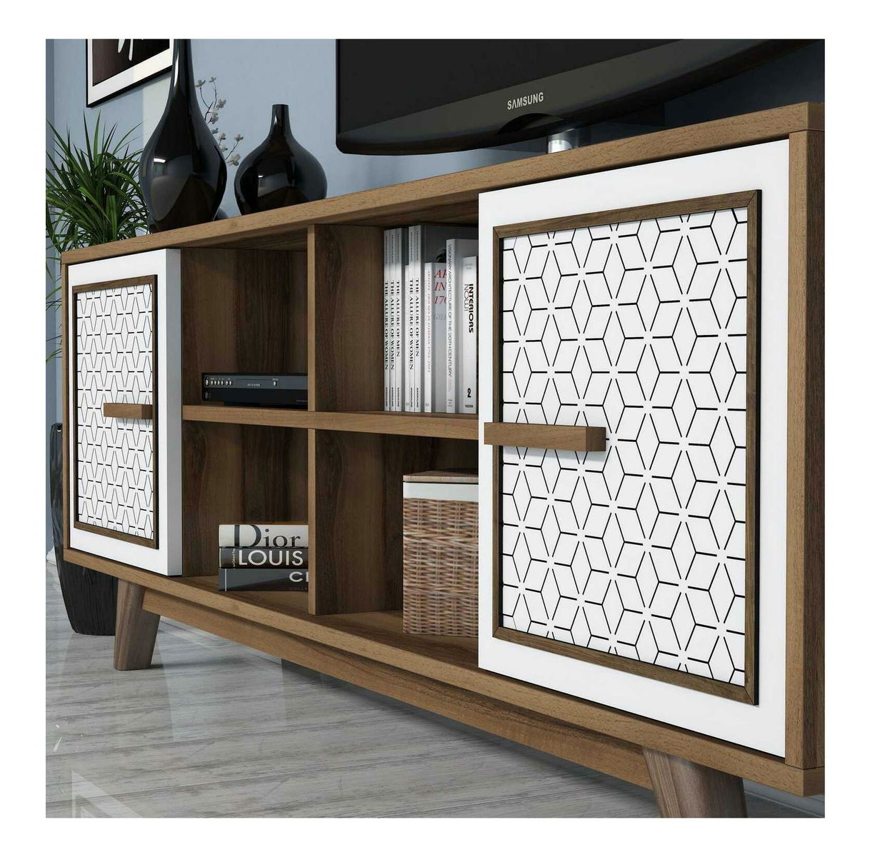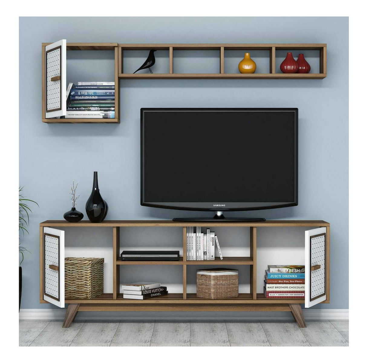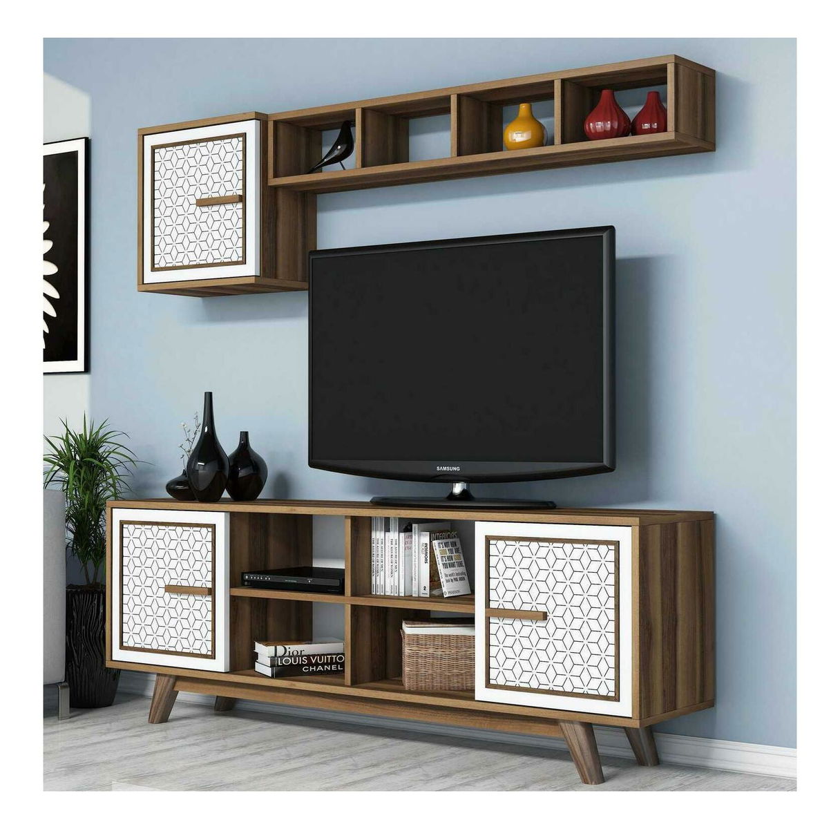 Obývací stěna Aysha (ořechová + bílá)