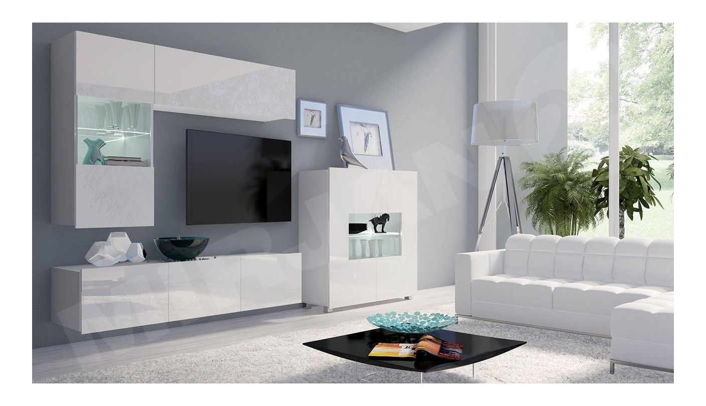 Obývací stěna Badiani III (bílá + bílá lesklá)