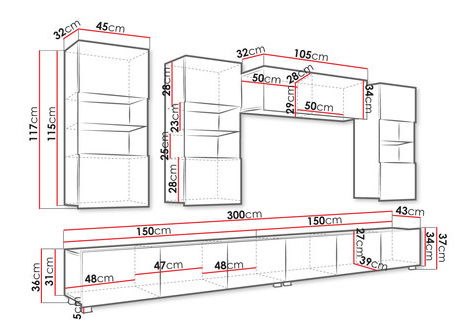 Obývací stěna je ideální volbou pro ty, kteří hledají pohodlí a styl. Uvedená cena zahrnuje následující komponenty: TV skříňka Bralani 150 BR04: šířka: 150, výška: 37, hloubka: 43 x 2ks Police Bralani BR02: šířka: 105, výška: 35, hloubka: 32 x 1ks Závěsná vitrína7, hloubka: 32 x 3ks Barvy: možnost výběru barev zde Vyrobeno: korpus - laminovaná dřevotřísková - 16mm, dvířka - laminovaná dřevotřísková - 15mm, tv skříňka může být volně stojící (nožky - stříbrné - 5cm) nebo je možné ji zavěsit na zeď, dokoupení LED osvětlení studené bílé nebo modré, součástí sestavy jsou plíšky k montáži na zeď, ale součástí nejsou montážní hmoždinky Záruční doba: 24 měsíců
