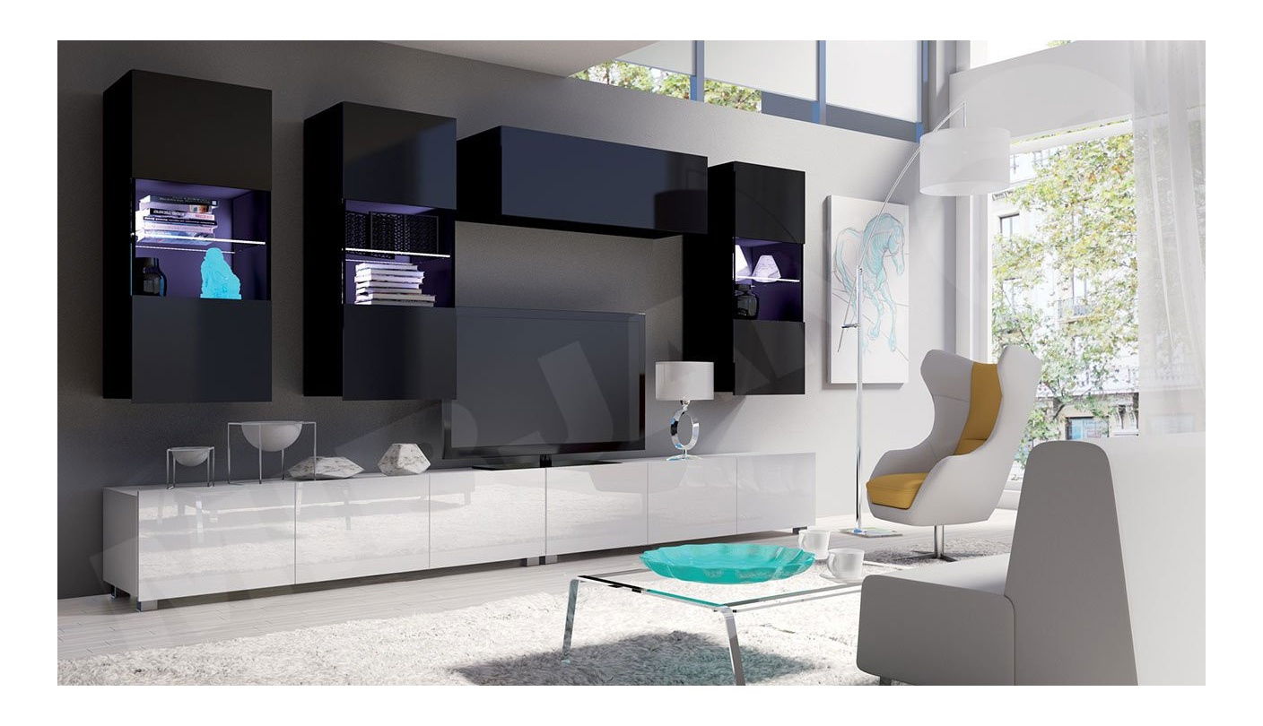 - Obývací stěna Badiani V (černá + černý lesk + bílý lesk)