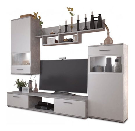 Obývací stěna Balbo (beton + bílá matná) (bez osvětlení)