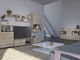 Obývací stěna, sestává ze čtyř prvků. TV stolek s poličkou pro umístění AV techniky, visící a stojící vitrína. Obývací sestavu již doplňuje pouze polička na zeď. K sestavě si můžete přiobjednat efektní LED osvětlení.