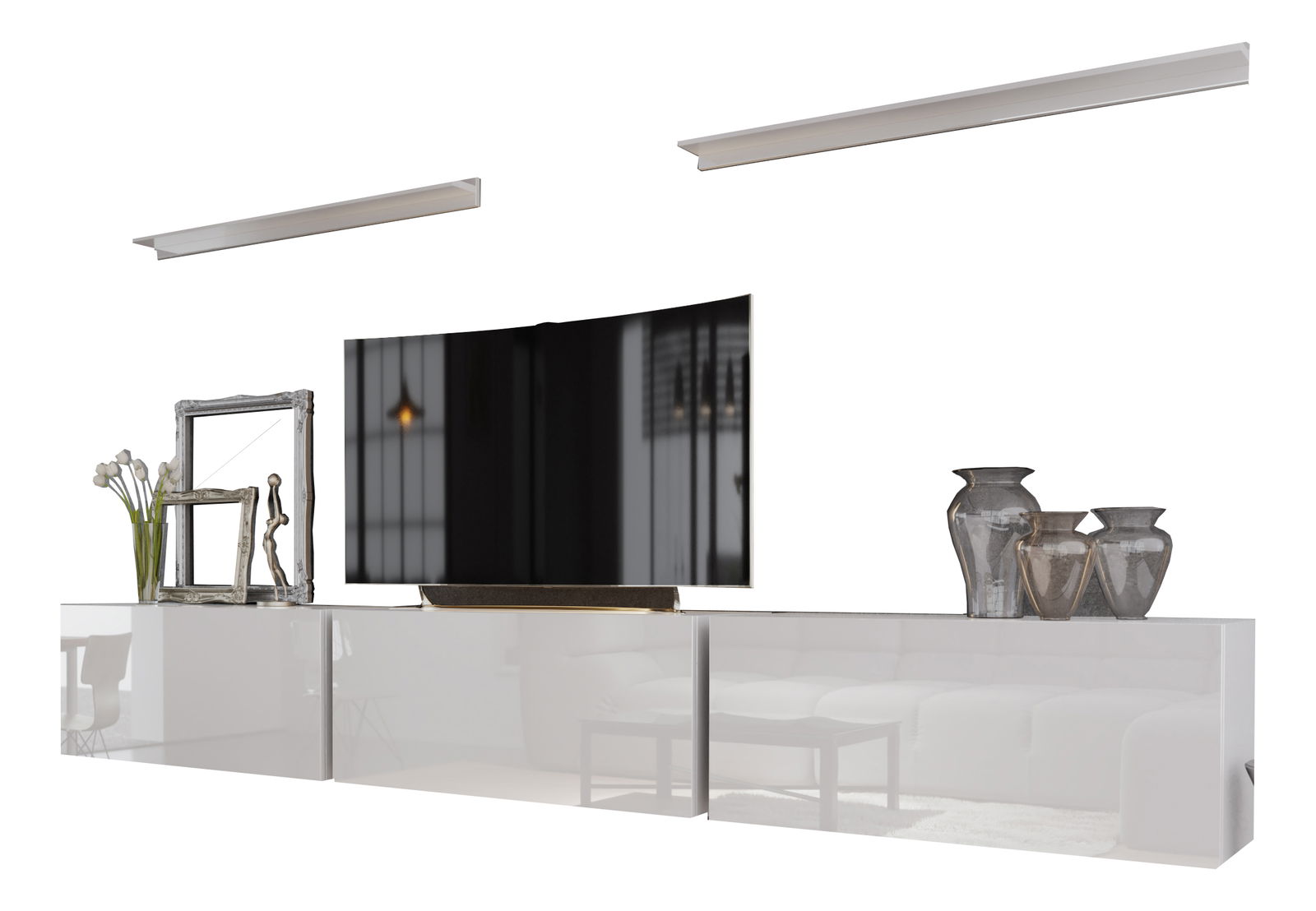 Obývací stěna Balldy (bílá + bílý lesk)