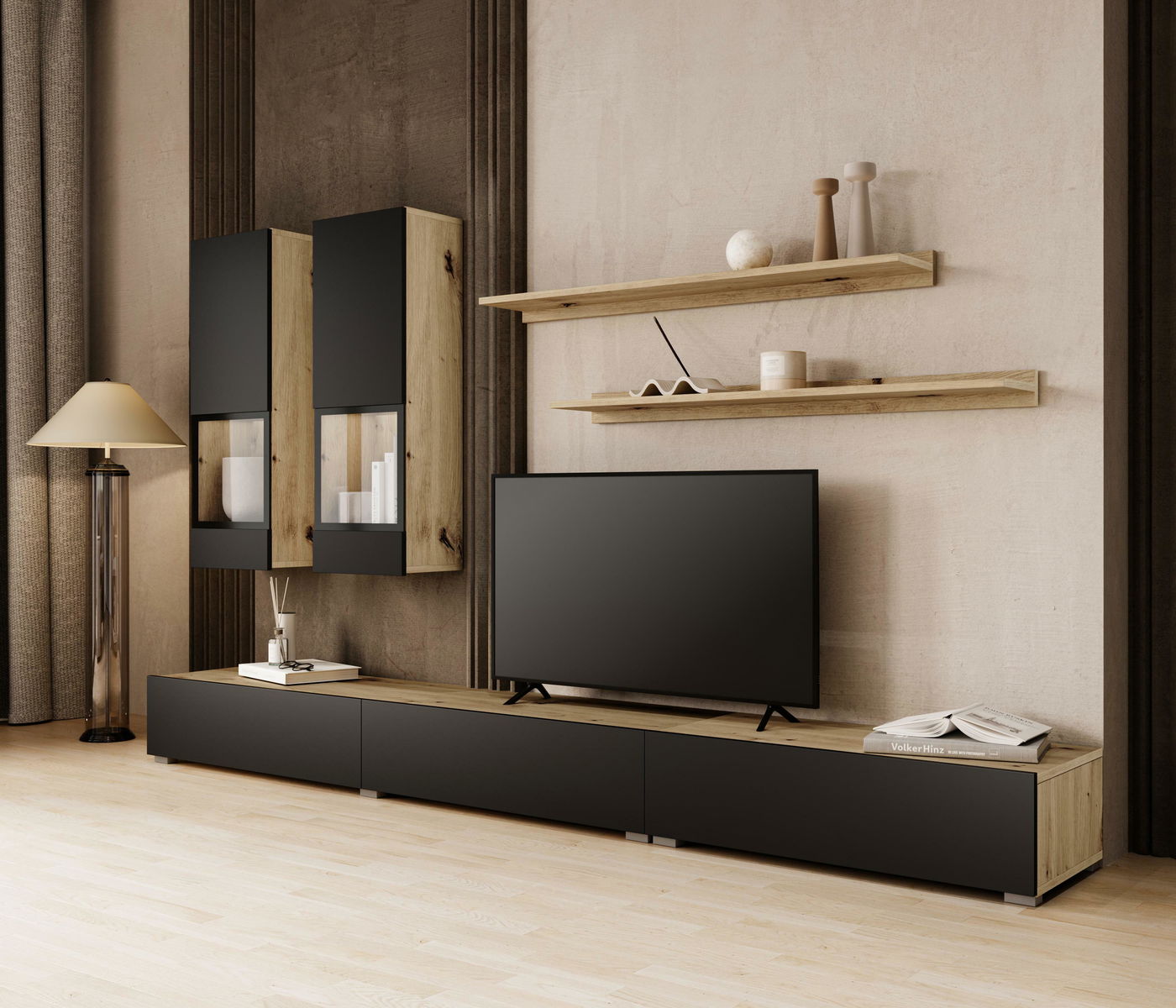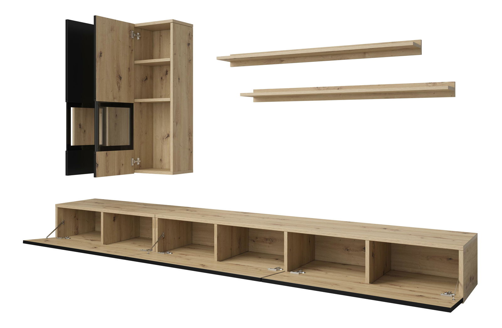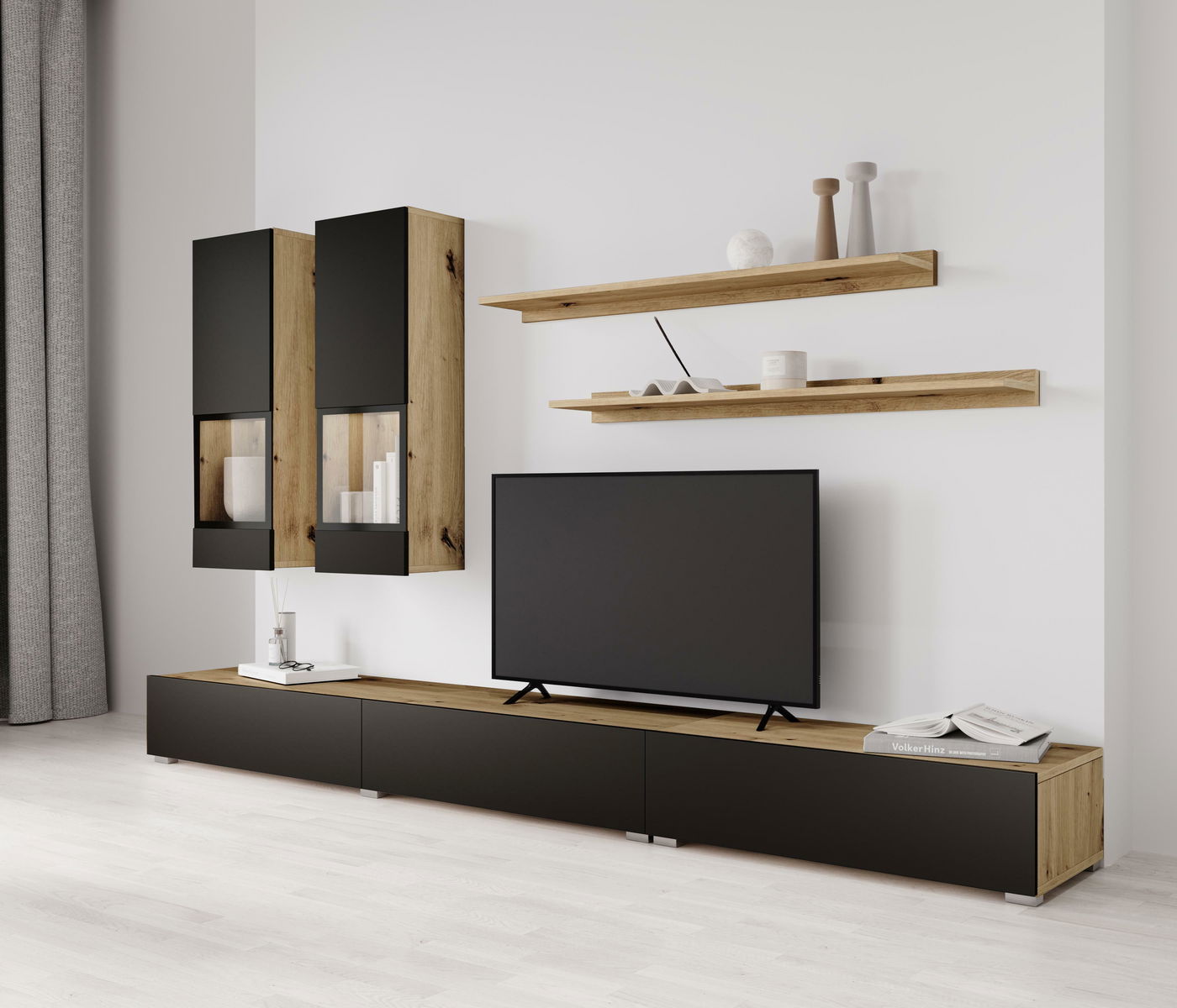 Obývací stěna Barly BM10 (dub artisan + černá matná)