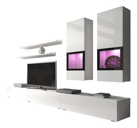 Obývací stěna Barly Typ 10 (bílá + bílý lesk)
