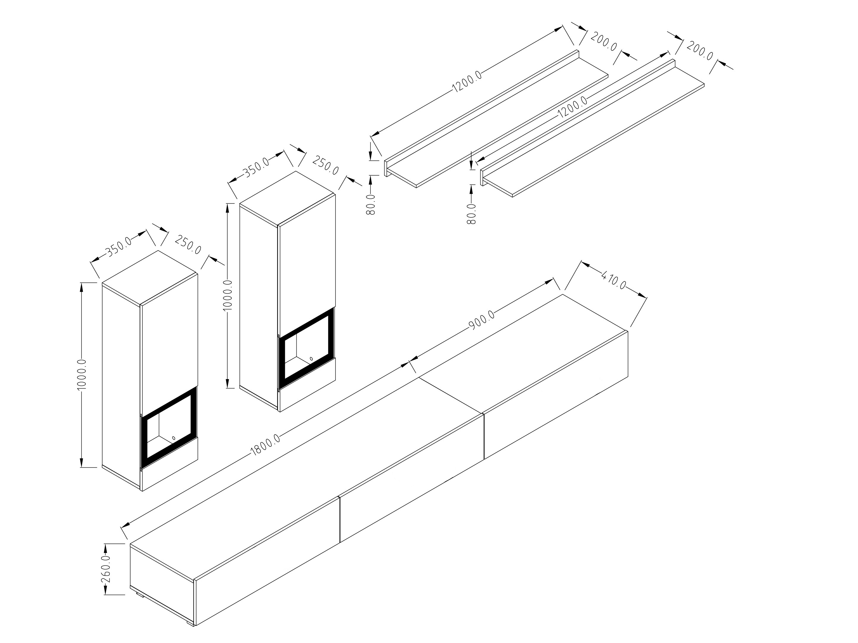 Otevírání pomocí pístů, rozměr (v.š.h) 26 x 270 x 41 cm