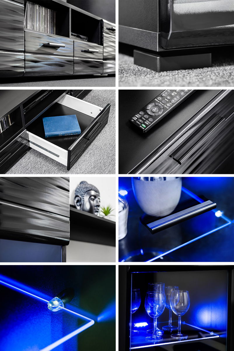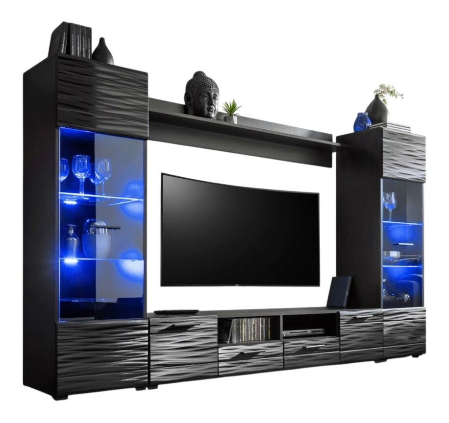 Obývací stěna Beltrice (černá + lesklá fólie)