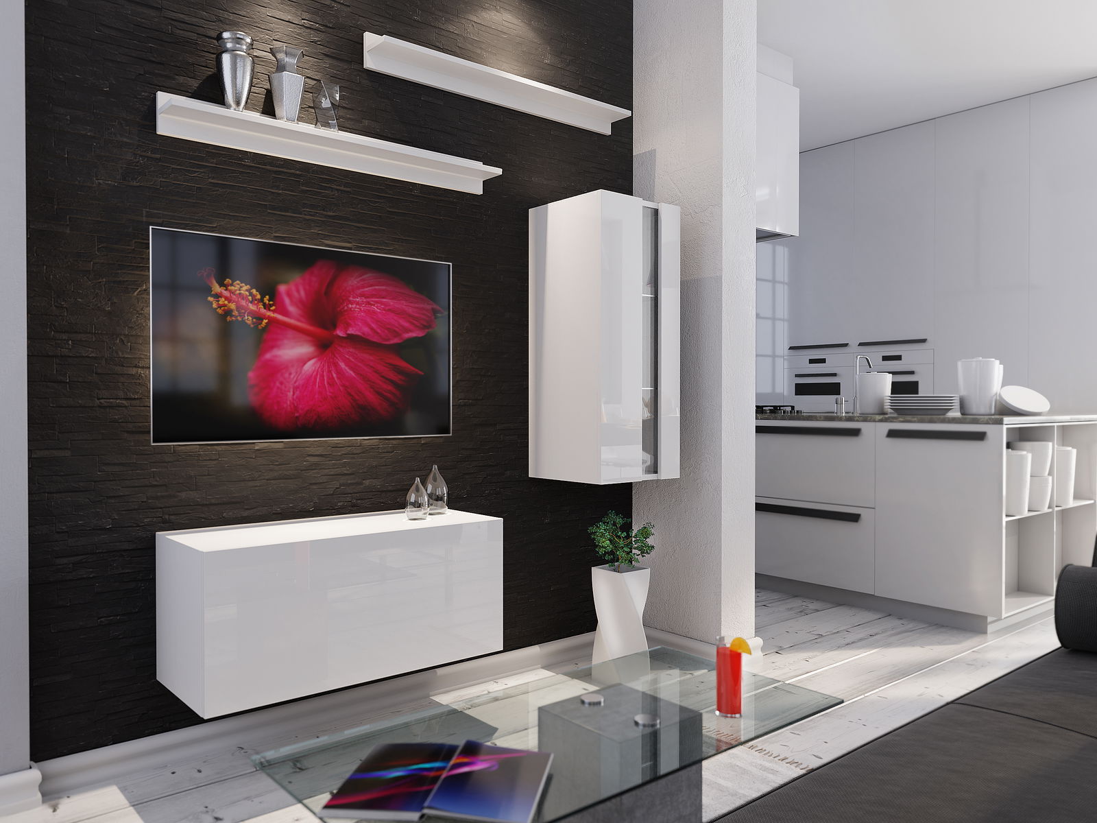 Obývací stěna Bemoi (bílá + bílý lesk)