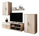 ZobrazitJednoduchá a moderní obývací stěna Berno má variabilní úložný prostor, čímž se z ní stává praktický kousek. Obývací stěna je složena ze dvou skříněk, TV stolku a poličky. Závěsná skříňka a komoda mají úložný prostor oddělený poličkou na dva odkládací místa. TV stolek disponuje otvírací skříňkou shora, která je uvnitř rozdělena příčkou na dva úložné prostory. Na boku TV stolku je otevřený prostor rozdělen poličkou na dvě části.