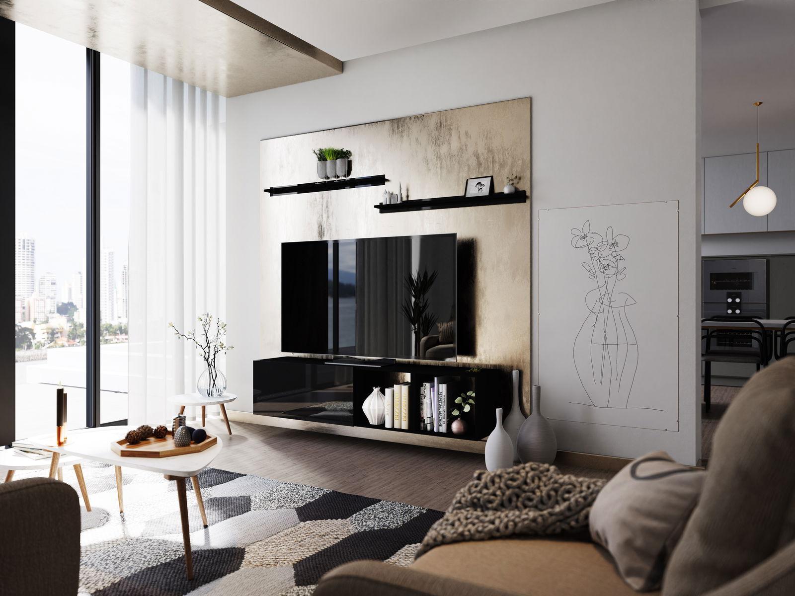 Obývací stěna Berny je kombinací nejdůležitějších prvků v obývacím pokoji. Kromě funkčnosti obývací stěny je třeba věnovat pozornost i jejího vzhledu. Všechna dvířka se otevírají důmyslným PUSH-CLICK systémem, kdy stačí jemně zatlačit pro otevření nebo opětovné zavření dvířek. K této obývací stěně je možnost zakoupení LED osvětlení. Nábytek má dvě možnosti montáže: můžete ji umístit na stěnu, opticky zvětšit prostor, přidat její lehkost nebo ji umístit na podlahu pomocí nožiček.