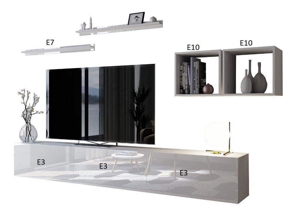Obývací stěna Berny 18 (bílá + bílý lesk)