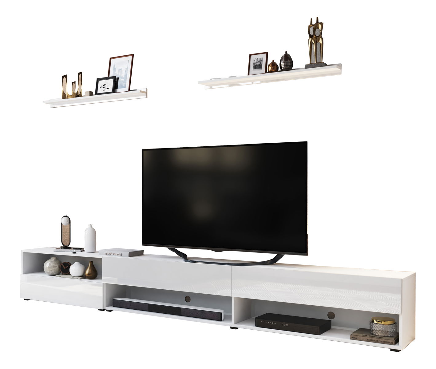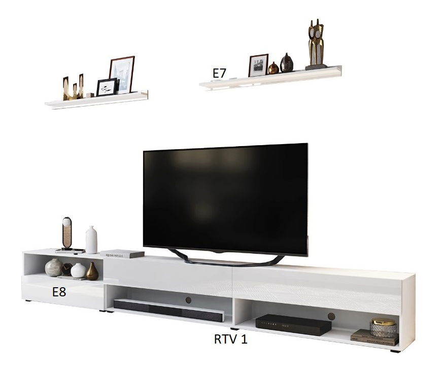 Polička - 7x100x10 cm, TV stolek - 40x266x38 cm