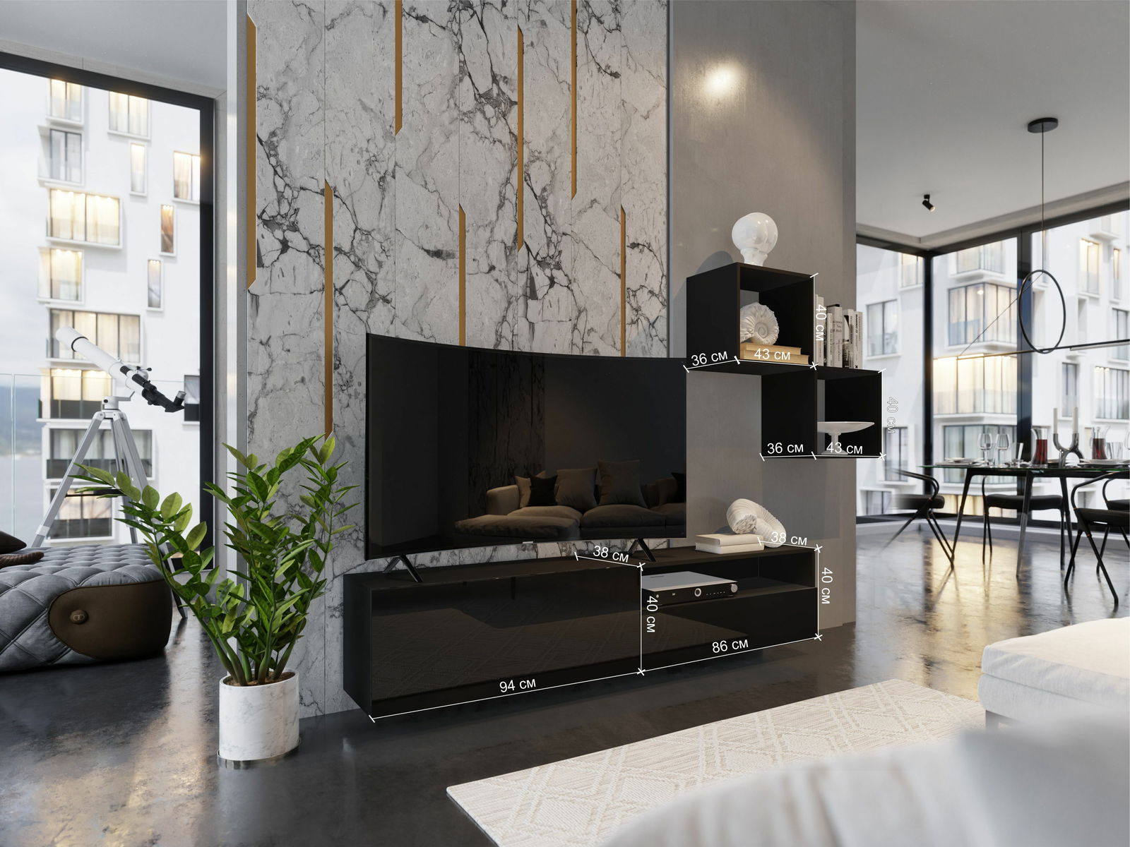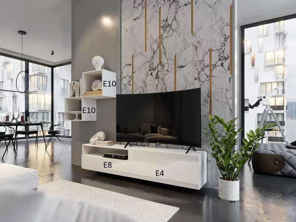 Bílá obývací stěna Berny je skvělou volbou do každého obývacího pokoje. Tato stěna kombinuje funkčnost a moderní vzhled do dokonalého celku. Všechna dvířka mají důmyslný PUSH-CLICK systém, který umožňuje snadné otevření a zavření. Tato sestava má také možnost zakoupení LED osvětlení, které dodá pokoji ještě více stylu. Obývací stěna Berny se může umístit na stěnu, čímž opticky zvětší prostor a přidá lehkost místnosti nebo na podlahu s pomocí nožiček. Materiál sestavy je MDF lakovaná pro přední části a dřevotříska o tloušťce 16 mm pro korpus. Způsob otevírání dvířek je PUSH TO OPEN.