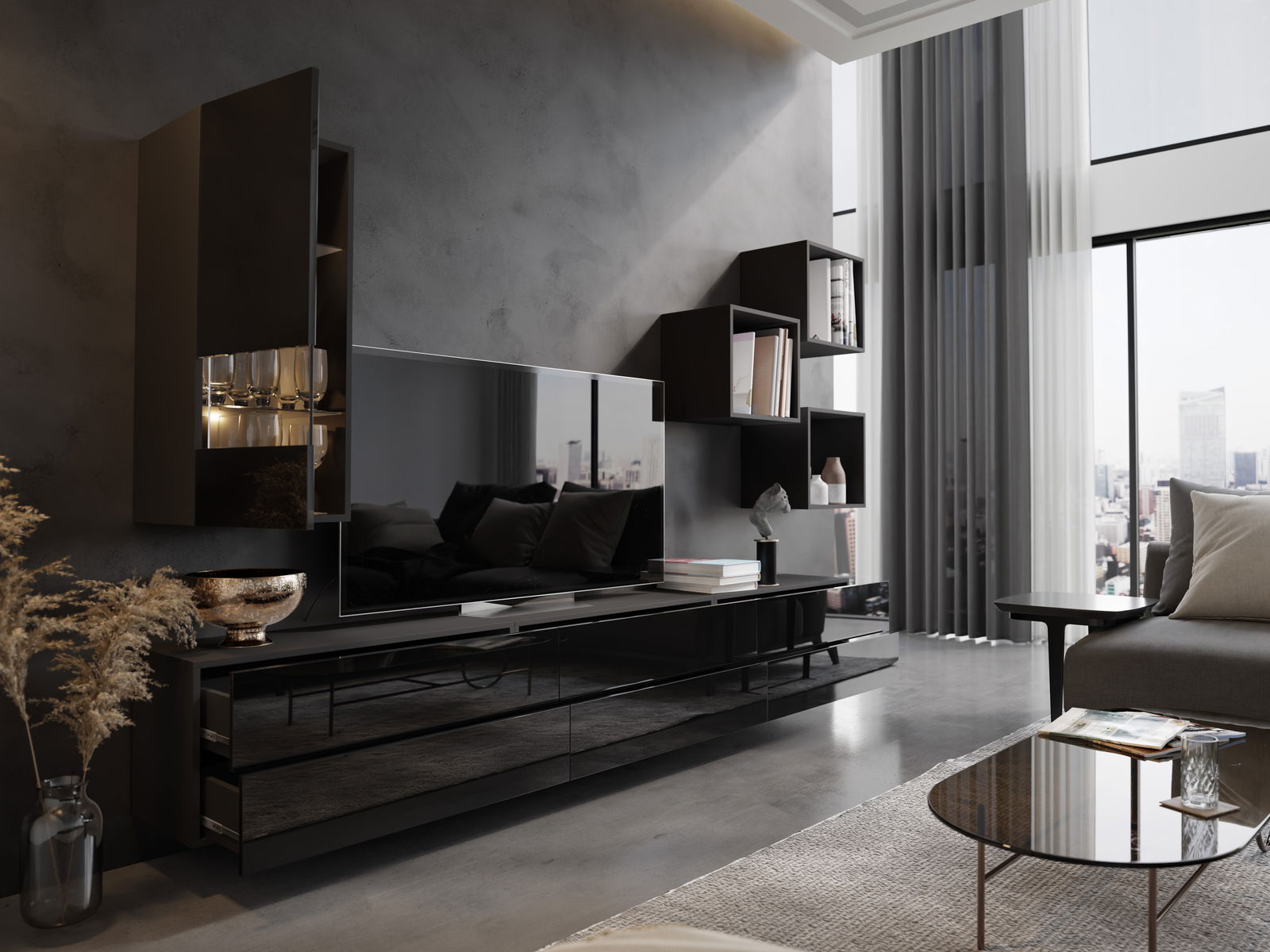 - Obývací stěna Berny 37 (černá + černý lesk)