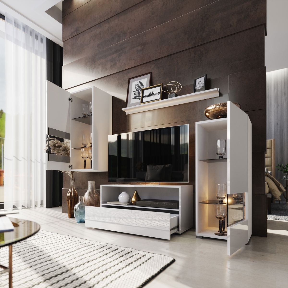 Obývací stěna Berny 39 (bílá + bílý lesk)