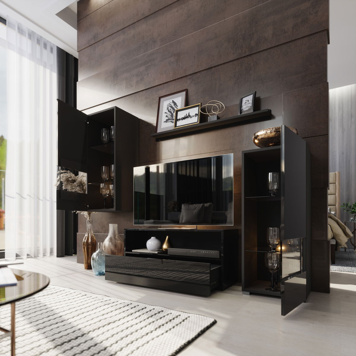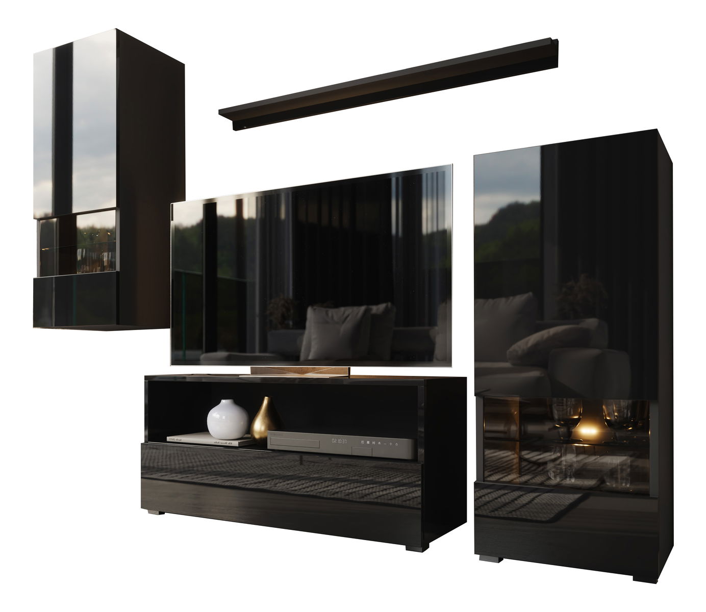 Obývací stěna Berny 39 (černá + černý lesk)