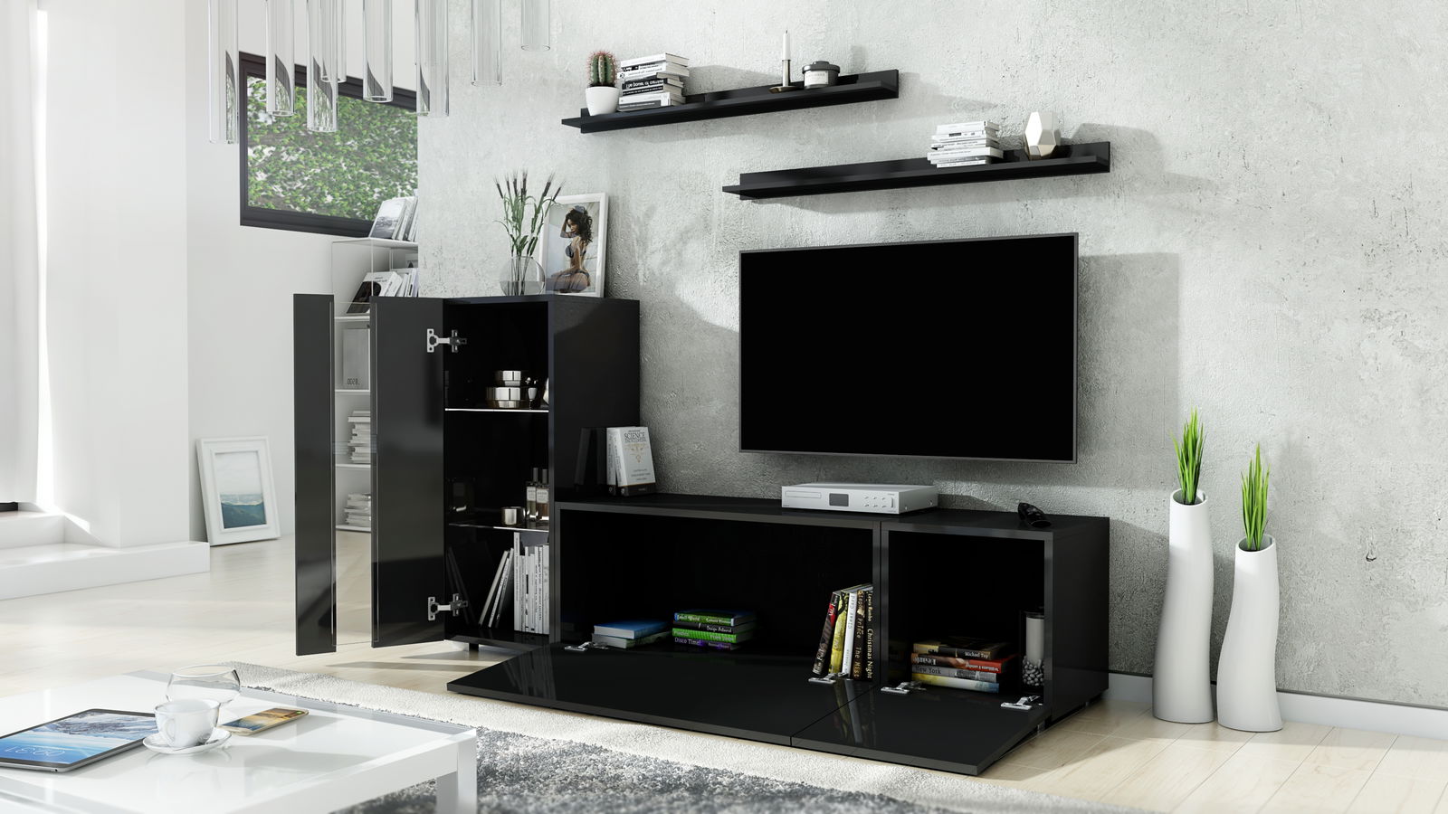 Obývací stěna Berny 40 (černá + černý lesk)