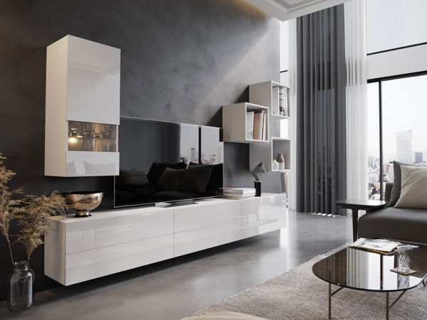 Obývací stěna Berny 45 (bílá + bílý lesk)