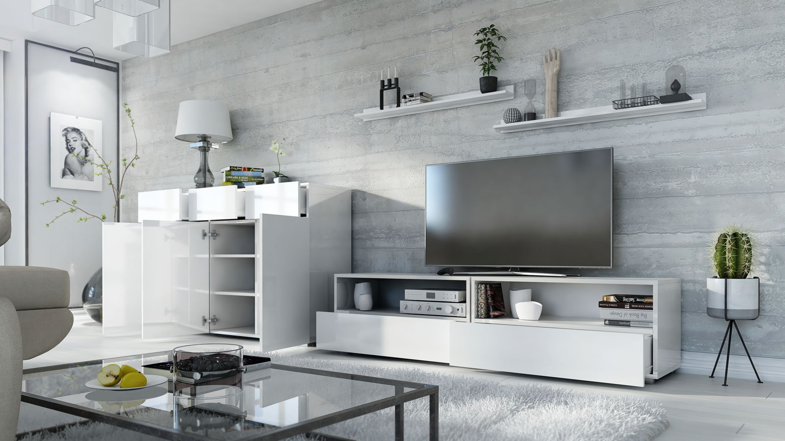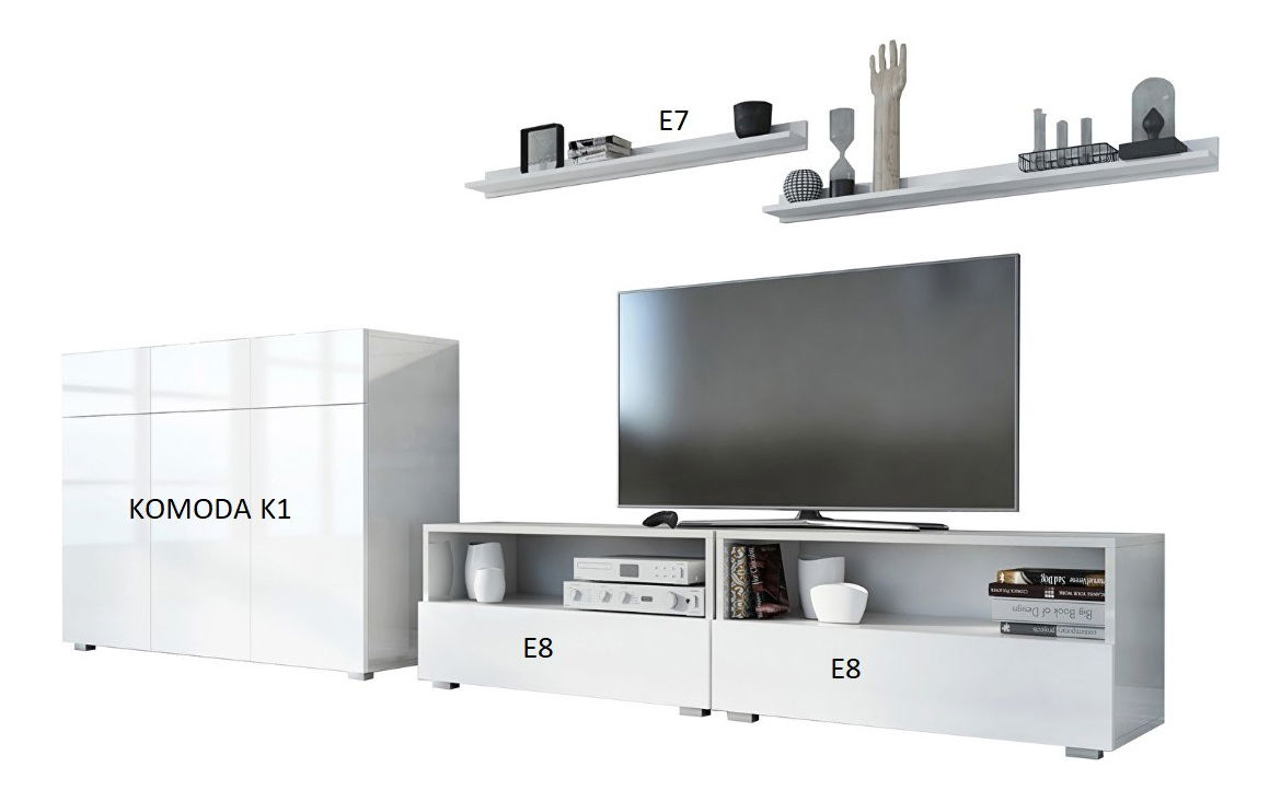 Obývací stěna Berny 47 (bílá + bílý lesk)