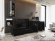 Obývací stěna Berny v černém lesku je ideální kombinací funkčnosti a designu pro váš obývací pokoj. Dveře jsou vybaveny důmyslným PUSH-CLICK systémem, který zajišťuje pohodlné otevírání a zavírání. Součástí stěny je také možnost zakoupení LED osvětlení, které ještě více zvýrazní její eleganci. Stěnu můžete namontovat na stěnu, čímž opticky zvětšíte prostor, nebo ji umístit na podlahu pomocí nožiček. Stěnu tvoří skříňky, závěsná police a vitríny, které jsou vyrobeny z kvalitního materiálu. Fronty jsou z MDF lakované desky a korpus je z dřevotřísky o tloušťce 16 mm. Rozměry jednotlivých komponent stěny jsou uvedeny níže.