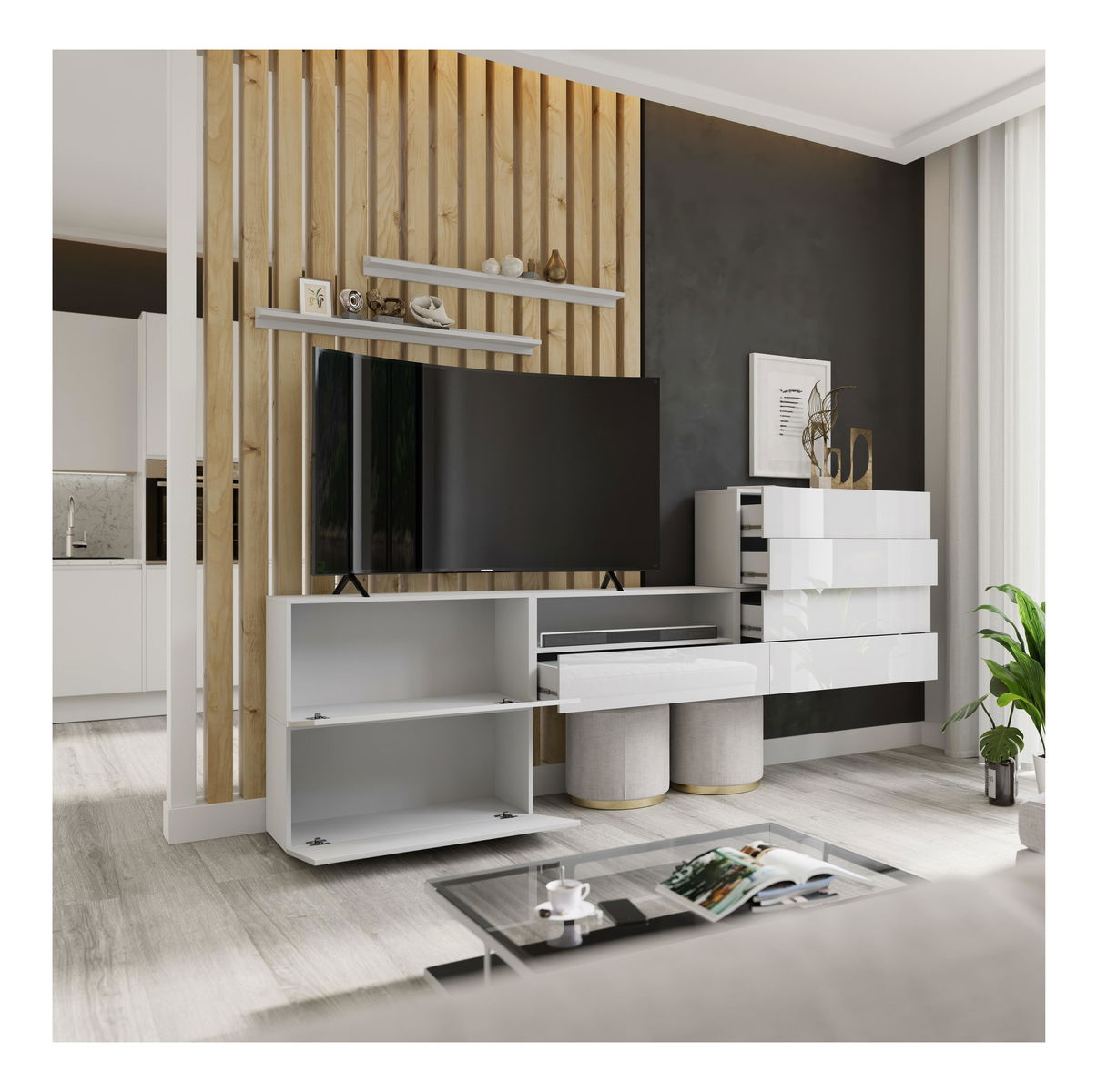 Obývací stěna Berny 52 (bílá + bílý lesk)