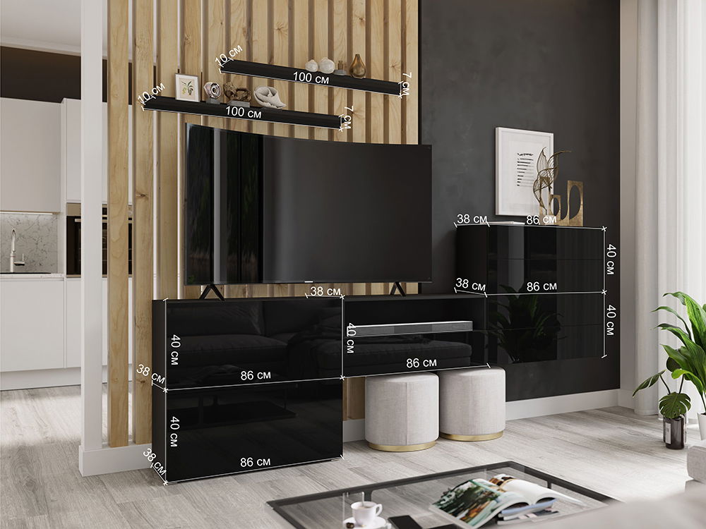 ZobrazitBílá obývací stěna Berny je skvělou volbou do každého obývacího pokoje. Tato stěna kombinuje funkčnost a moderní vzhled do dokonalého celku. Všechna dvířka mají důmyslný PUSH-CLICK systém, který umožňuje snadné otevření a zavření. Tato sestava má také možnost zakoupení LED osvětlení, které dodá pokoji ještě více stylu. Obývací stěna Berny se může umístit na stěnu, čímž opticky zvětší prostor a přidá lehkost místnosti nebo na podlahu s pomocí nožiček. Materiál sestavy je MDF lakovaná pro přední části a dřevotříska o tloušťce 16 mm pro korpus. Způsob otevírání dvířek je PUSH TO OPEN.